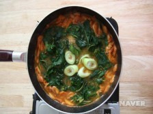04. 대파, 마늘, 아욱을 넣고 더 끓인다.